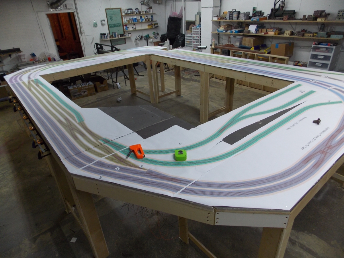 | Step 1: Lay your Full Size Track Plan Print on your baseboard or sub-roadbed panel to check positioning. | |||
