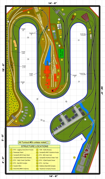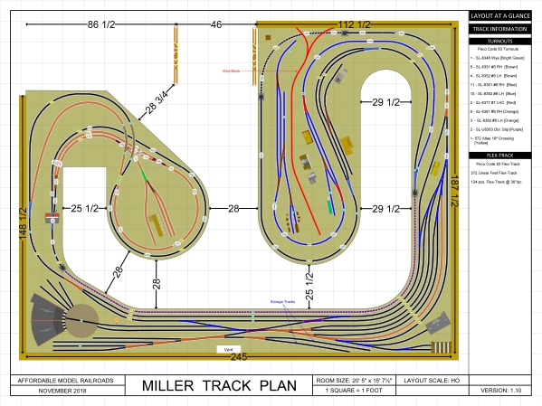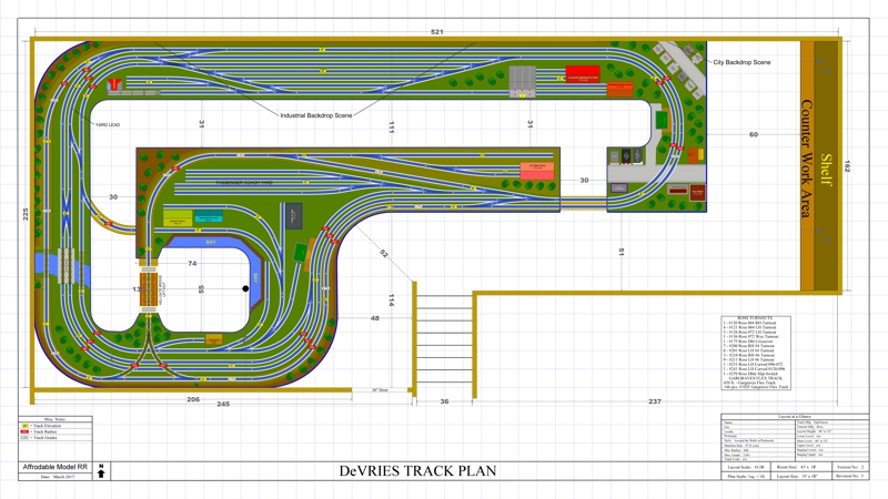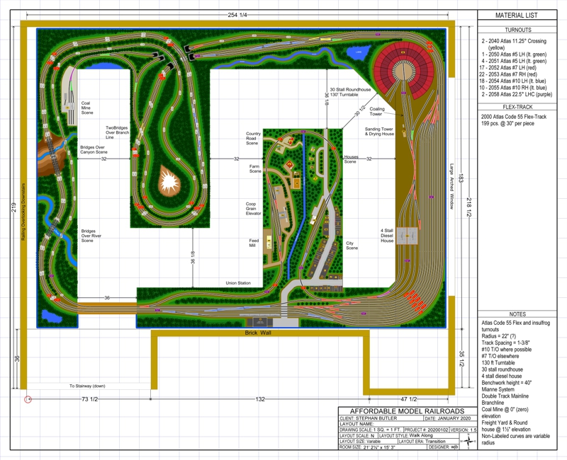 large or small. We can also design in a variety of cad software packages for model railroad design.We have done hundreds of plan designs since we began in business in 2011,. We have designed as small as 15" x 12' switching layout to a 2800sq.ft. empire. Below are some designs we have done for clients using AnyRail and 3rd Planit Railroad Cad design programs.
